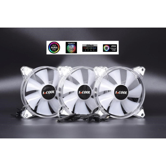 Popis 1stCOOL Fan KIT AURA EVO 1 ARGB, 3x Dual Ring fan + ARGB Nano controller