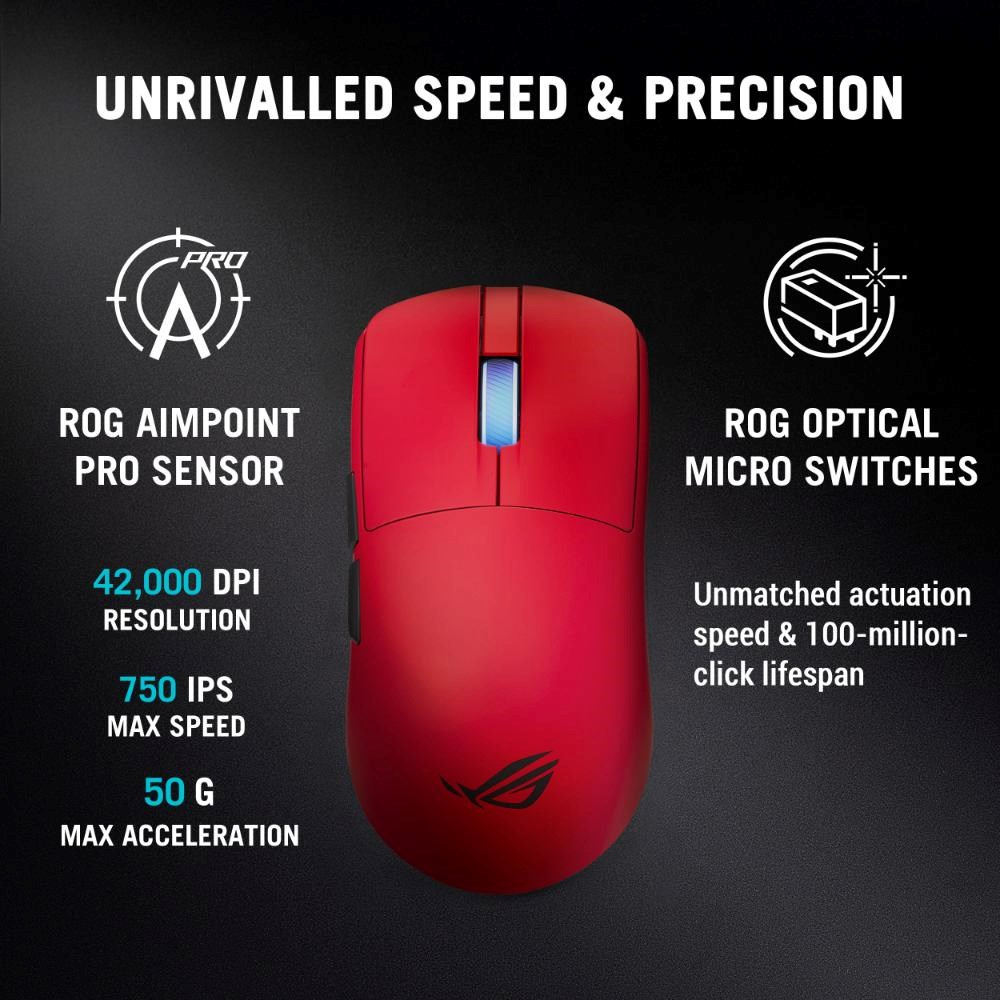 ROG Harpe II Ace je ultralehká herní myš vážící 48 gramů s polosymetrickým tvarem vyvinutým s pomocí profesionálních esport hráčů. Je vybavena celou řadou technologií schválených profesionály, včetně optického senzoru ROG AimPoint Pro s rozlišením až 42 000 DPI, optických mikrospínačů ROG a špičkového bezdrátového výkonu s frekvencí odezvy 8 000 Hz díky technologii SpeedNova 8K.