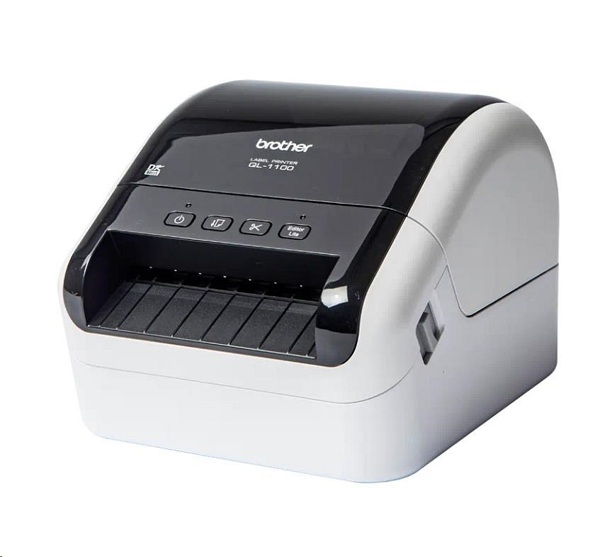 Tlačiareň QL-1100 s pravou tlačovou hlavou šírky 4 palce (101,6 mm) ponúka maximálnu kompatibilitu so softvérom tretích strán dodávajúcich balíčky.