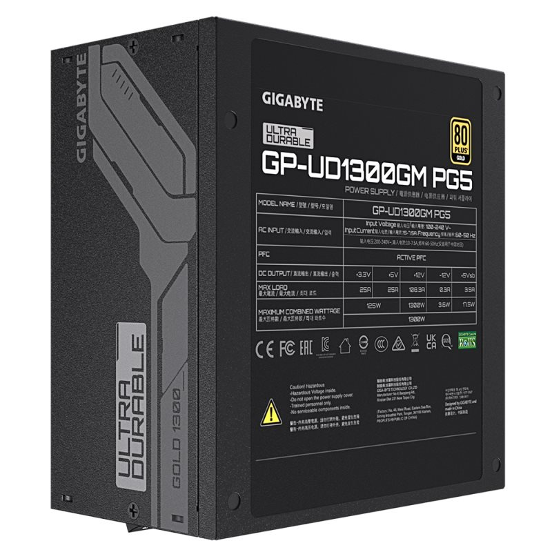 UD1300GM PG5 dokáže odolať až 2x celkovému výpadku výkonu. Je plne kompatibilný so štandardom Intel PSDG (Power Supply Design Guide) ATX 3.0, ktorý podporuje až 200% výkyvov výkonu, dosahuje 70% účinnosti pri nízkej záťaži a vyhovuje požadovaným normám časovania napájania.