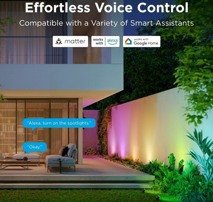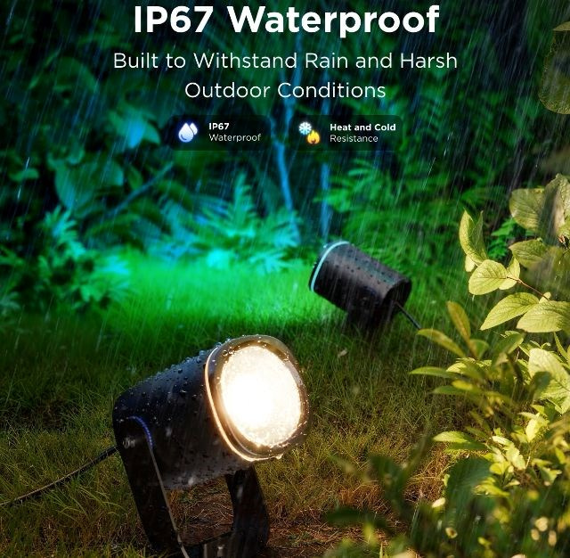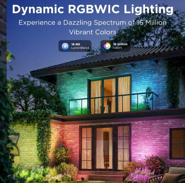 Energeticky úsporné záhradné reflektory so svetelným výkonom 750 lm urobia z vašej záhrady dizajnový skvost. Vďaka technológii RGBICWW dokážu zobraziť až 16 miliónov farieb a ponúkajú aj biele spektrum od 2700 do 6500 K. Na výber máte určite viac ako 50 režimov osvetlenia a pri počúvaní obľúbenej hudby si môžete vybrať aj zo 6 režimov rytmu. Alebo si jednoducho nastavte vlastné farebné kombinácie podľa svojich predstáv na každom z nich. Príkazy môžete zadávať aj hlasom prostredníctvom Siri, Amazon Alexa alebo Google Assistant, prípadne prostredníctvom aplikácie Govee Home v smartfóne alebo tablete. Nové svetlá podporujú technológiu Matter, takže natívne podporujú aj Apple Homekit. Svetlo má celkovú dĺžku takmer 16 metrov a veľmi ľahko sa inštaluje. Pomocou časovača môžete svetlá automaticky zapínať a vypínať na základe západu a východu slnka. Svetlá majú stupeň vodotesnosti IP67 (okrem napájacieho adaptéra) s prevádzkovou teplotou od -20 °C do 40 °C.