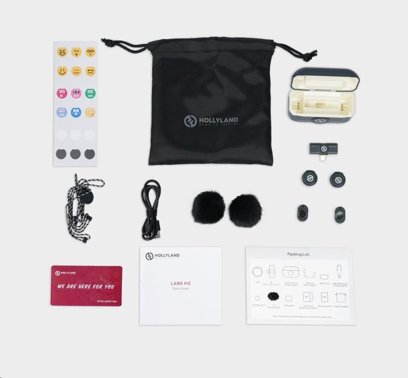LARK M2 sa dodáva so sadou užitočného príslušenstva, vrátane veterných krytiek na nahrávanie vonku, káblových konektorov pre jednoduché pripojenie a špeciálneho náhrdelníka pre každý TX. S týmto príslušenstvom budete mať všetko, čo potrebujete na nastavenie zariadenia LARK M2 a využívanie jeho funkcií.