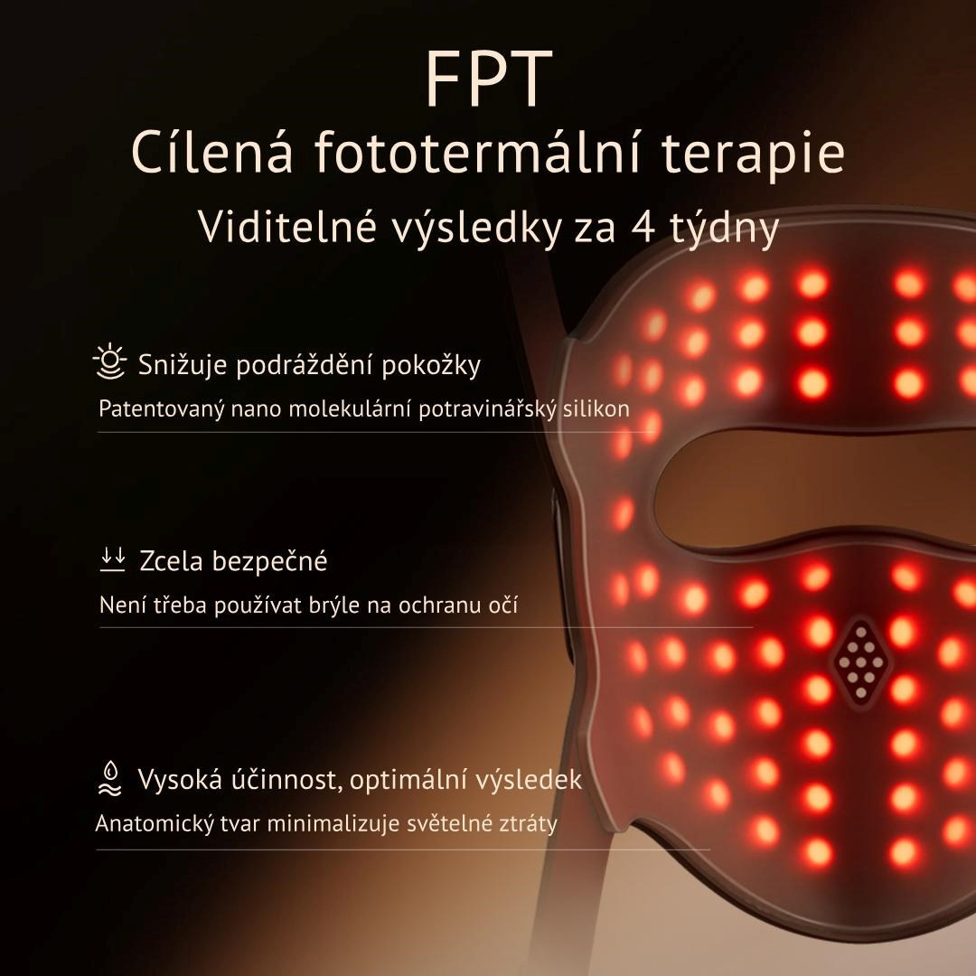 Maska využíva unikátnu fototermálnu technológiu. 140 laserových svetelných zdrojov vytvára úzky koncentrovaný lúč svetla, ktorý preniká hlboko do pokožky a dosahuje až šesťnásobne vyššiu účinnosť ako bežné LED masky. Kombinácia štyroch typov laserových svetelných zdrojov – 660 nm, 850 nm, 940 nm a 1064 nm – pôsobí na rôzne vrstvy pokožky a zameriava sa na konkrétne problémy, ako sú vrásky, strata jasu a pružnosti alebo pigmentácia pokožky. Vďaka tejto technológii si môžete užiť ošetrenie porovnateľné s klinickým laserovým ošetrením priamo u vás doma a je to prvá maska, ktorá ponúka ošetrenie s vlnovou dĺžkou 1064 nm doma, bez potreby pravidelných a drahých návštev salónov.