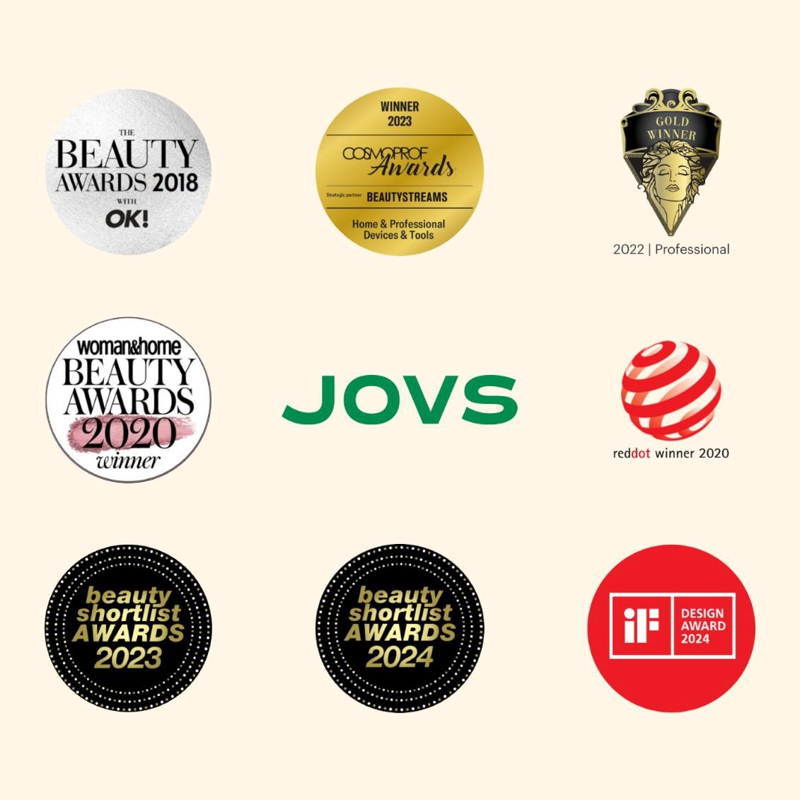 Spoločnosť JOVS je globálnym lídrom v oblasti estetických a kozmetických technológií, známym svojimi patentovanými inováciami a dôrazom na vedecký výskum. Každý produkt prechádza rozsiahlym testovaním s rôznymi skupinami používateľov, aby sa zabezpečil maximálny komfort, bezpečnosť a účinnosť. Značka JOVS sa stala populárnou medzi mnohými poprednými hollywoodskymi celebritami. Vďaka svojmu priekopníckemu prístupu k dizajnu a výkonu získala spoločnosť JOVS mnoho prestížnych ocenení v oblasti krásy a dizajnu, vrátane Red Dot Award, iF Design Award, Cosmoprof Awards a Beauty Shortlist Awards.