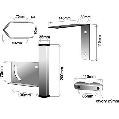 Základňa: držák pre vertikálne alebo horizontálne uchytenie na stožiar do priemeru 70mm