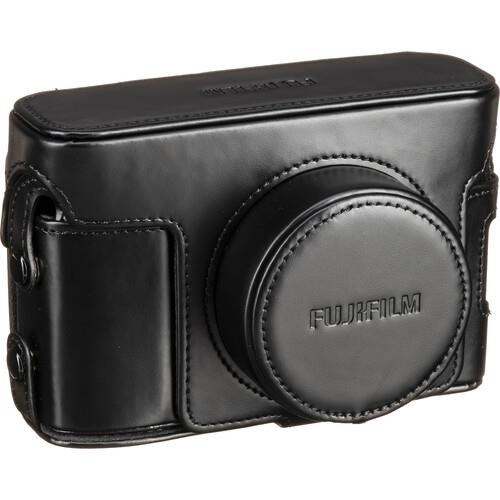 Kožené pouzdro LC-X100VI v černé barvě, určené pro digitální fotoaparáty FUJIFILM X100VI a X100V, má přesně padnoucí tvar, který chrání fotoaparát před lehkými nárazy a poškrábáním. Zajišťuje také lepší úchop při držení a fotografování. Je vyrobeno z kůže, působí luxusním dojmem a přitom zachovává přístup k baterii i paměťové kartě.