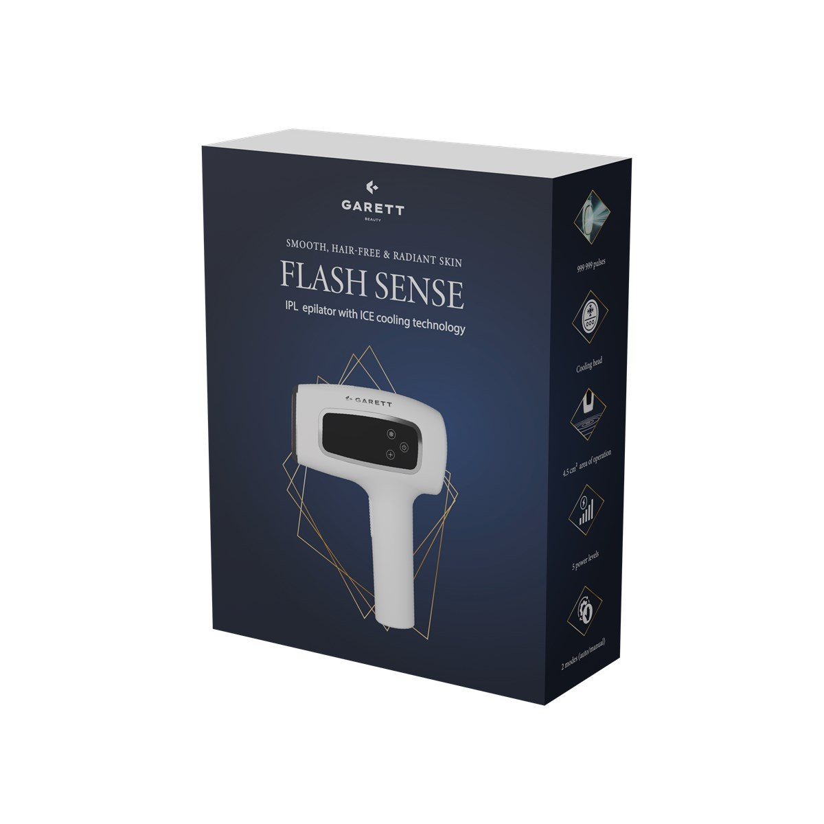 Garett Beauty Flash Sense je moderní IPL epilátor určený pro komfortní a dlouhodobou redukci chloupků v domácím prostředí. Kombinuje účinnou světelnou technologii s aktivním chlazením, které zvyšuje pohodlí během ošetření. Díky 5 úrovním intenzity, dvěma režimům provozu a životnosti lampy až 999 999 impulzů je připraven na dlouhodobé používání bez nutnosti výměny hlavice.