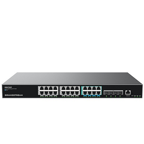 GWN7822P: 24 Gigabit portů (16 portů 1G, 8 portů 2,5G), 4 porty SFP+