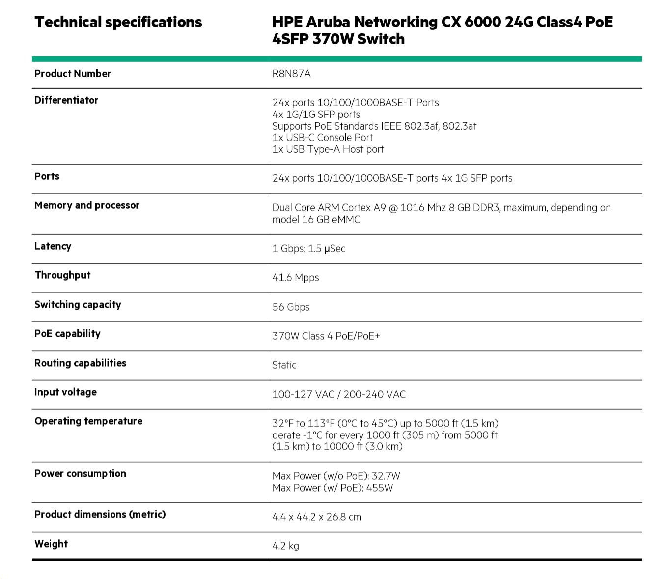 HPE Aruba Networking CX 6000 24G Class4 PoE