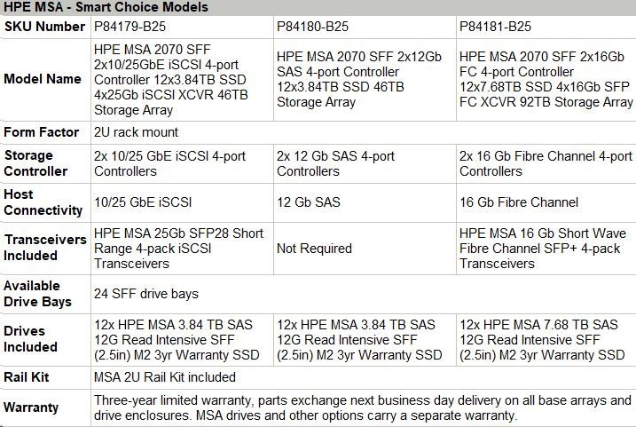 HPE MSA 2070 SFF 2x12Gb SAS 4-port Controller 12x3.84TB SSD 46TB Storage Array Smart Choice.