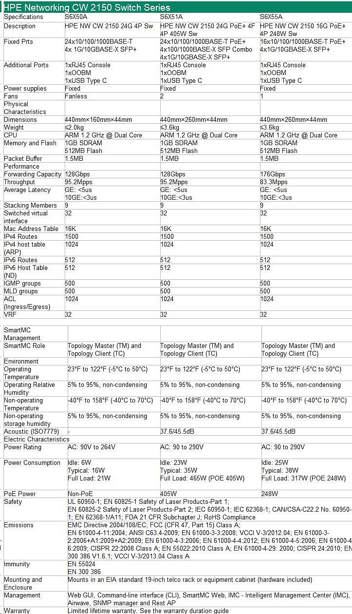 HPE Networking CW 2150 24p 10M/100M/1G PoE+ 4p SFP 1G Combo 4p SFP+ 1G/10G 405W Switch.