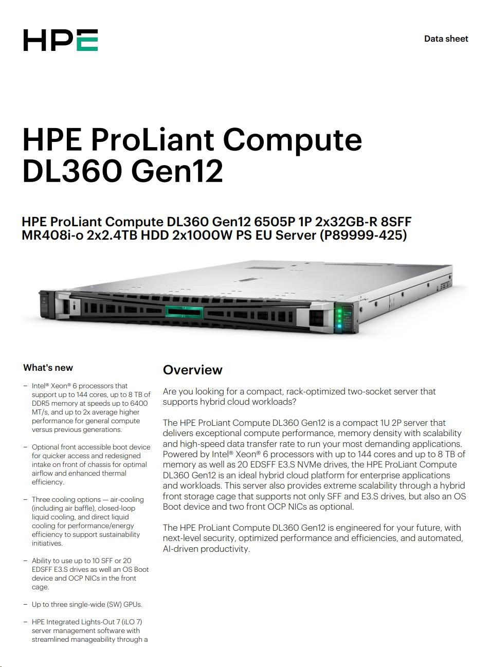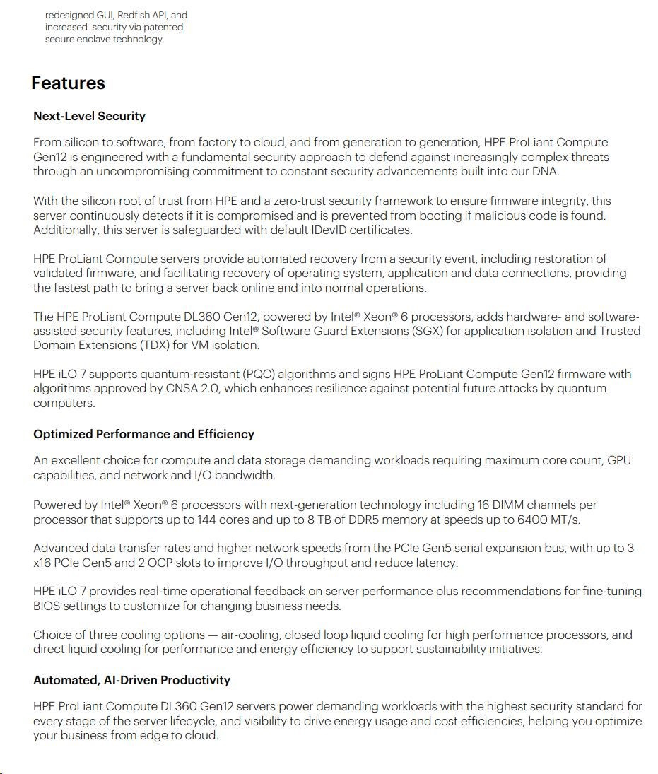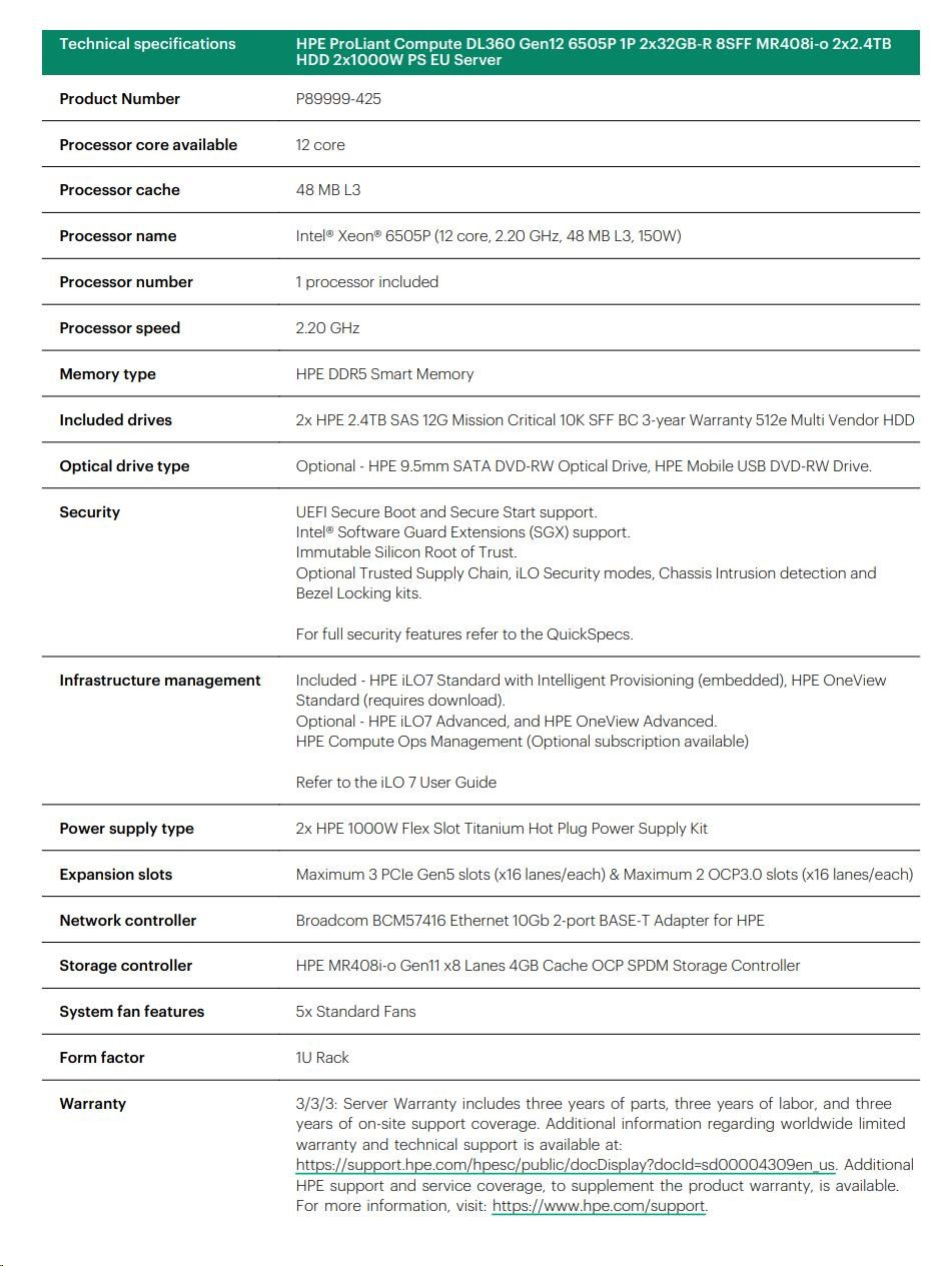 HPE PL DL360g12 6505P (2.2G/12C) 2x32G (P69727) 2x2.4TB MR408i-o 8SFF 2x1000W 2p10GbE NBD333 Smart Choice.