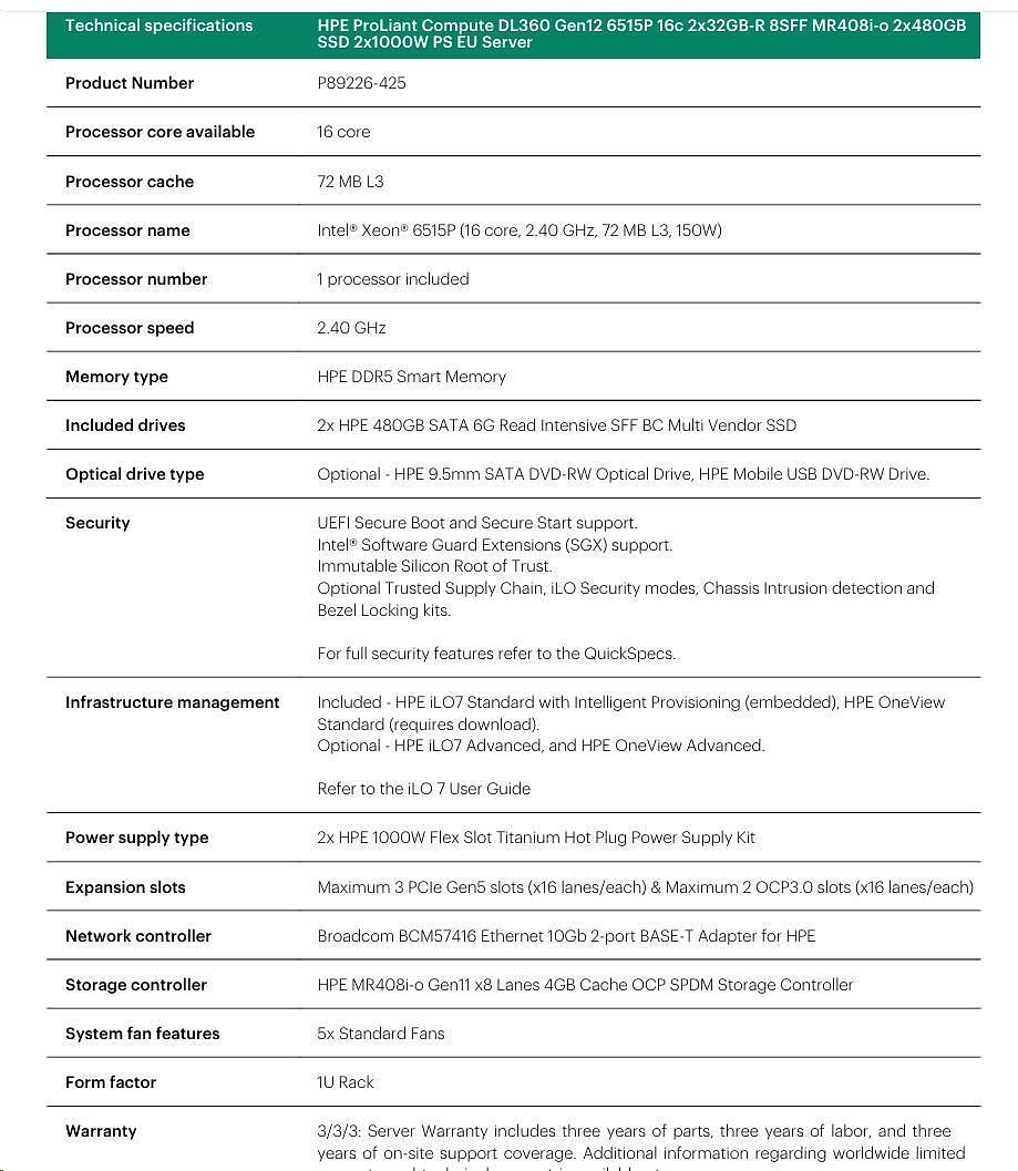 HPE PL DL360g12 6515P (2.4/16C) 4x32G (P69727) NS204i-uv2 MR408i-o 8SFF 2x1000W NBD333 Smart Choice.
