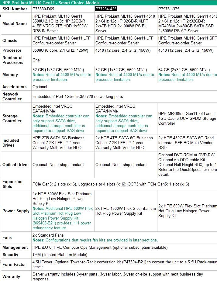 | HPE ProLiant ML110 Gen11 - Smart Choice Models | |