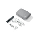 Pevné prepravné puzdro pre stabilizátor Insta360 Flow 2 Pro pojme stabilizátor, svetlo, magnetický držiak telefónu a ďalšie príslušenstvo. Je vyrobené z odolného a ľahkého materiálu EVA s mäkkým textilným povrchom pre pohodlné držanie a prevenciu skĺzavania. Puzdro váži 249 g a jeho rozmery sú 16 x 23,6 x 7 cm.