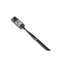 Selfie tyč pre akčné kamery Insta360. Nastaviteľná dĺžka 23,3cm až 114 cm. Materiál: hliník. Spôsob uchytenia: 1/4" skrutka. Tyč je automaticky odstránená z vyhotovených záberov.