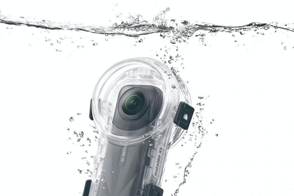 Neviditeľné puzdro v 360° záberoch: optický dizajn s kupolou minimalizuje skreslenie a optické artefakty pod vodou, takže puzdro nie je vo videu vidieť.