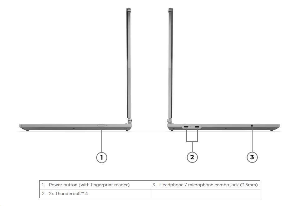 Standartné porty | 2x USB-C® (Thunderbolt™ 4 / USB4® 40Gbps), with USB PD 3.1 and DisplayPort™ 2.1 1x Headphone / microphone combo jack (3.5mm) |