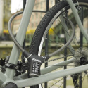 Oceľové lanko s priemerom 12mm a dĺžkou 0,9m má ergonomický tvar. Jeho vinylový povrch zabraňuje poškriabaniu. Obsahuje integrovaný nastaviteľný 4-ciferný kombinačný zámok.