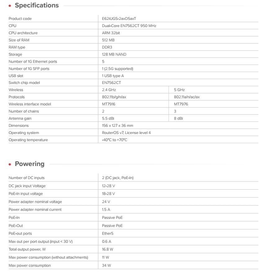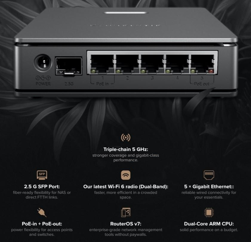 Popis MikroTik E62iUGS-2axD5axT 2,4/5GHz WiFi 6 router hAP ax S