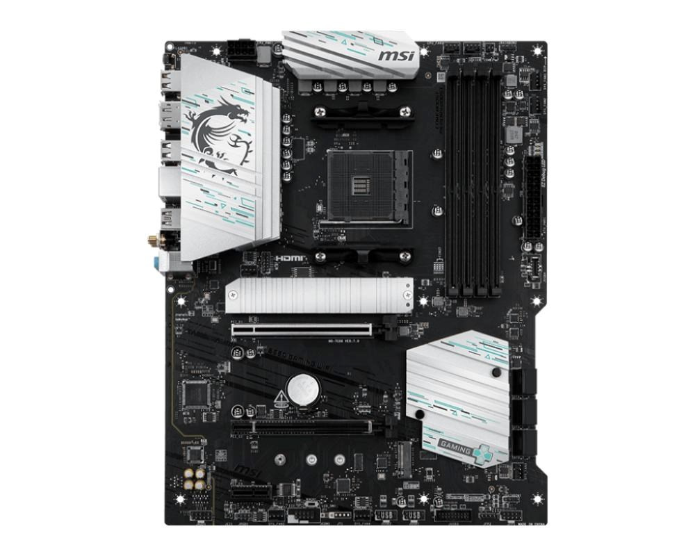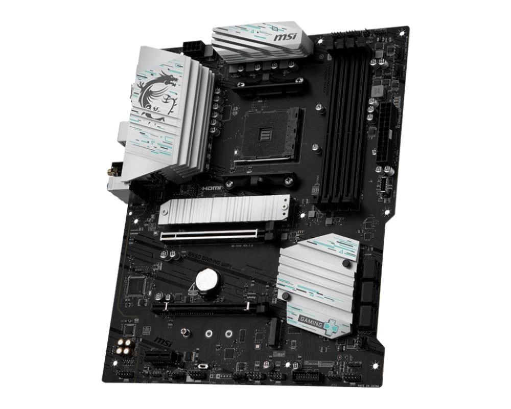 The B550 GAMING WIFI is crafted to offer extensive connectivity, versatile tools, and Wi-Fi solution for gamers seeking a comprehensive experience. Featuring an 1G LAN, Wi-Fi and PCIe 4.0 solution, it is ready for 24/7 non-stop gaming optimized for AMD Ryzen™ 5000 Series, 5000 G-Series, 4000 G-Series, and 3000 Series processors.