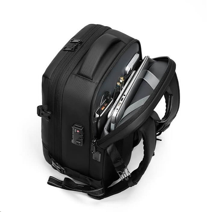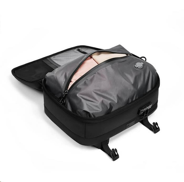 Dalšími skvělými vychytávkami tohoto cestovního parťáka jsou rozšiřitelnost, izolační nepropustná kapsa, samostatná přihrádka na notebook a mnohé další. Skvělou organizaci věcí umožňuje množství praktických vnitřních kapes, skrytá kapsa na cennosti a vnější kapsa na láhev. Klid na cestách vám zajistí bezpečnostní TSA zámek na kód, který ochrání všechny vaše uložené věci a je velmi praktický v případě kontrol na letištích. Pro co nejefektivnější odsátí vzduchu můžete využít naši kompresní pumpu, kterou nabízíme jako příslušenství k batohu.