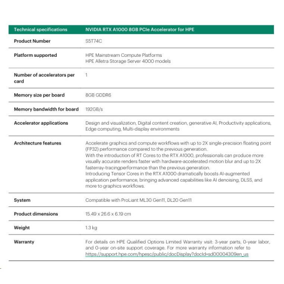 NVIDIA RTX A1000 8GB PCIe Accelerator