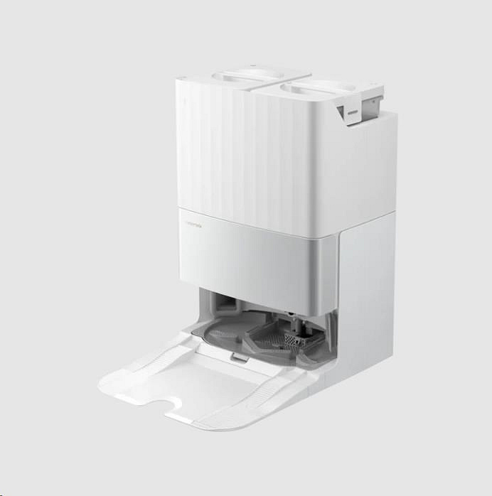 7 týdnů - bez potřeby manuálního vysypávání, 45°C - Sušení teplým vzduchem: Dokovací stanice je vybavena 2,7litrovým sáčkem na prach s certifikací E12. Po dokončení úklidu dojde v dokovací stanici k automatickému vysypání nádoby na prach robotického vysavače, takže jej nemusíte manuálně vysypávat po dobu až 7 týdnů. Sušení teplým vzduchem udržuje mopy i dokovací stanici v čistotě, zabraňuje vzniku zápachu a bakterií.