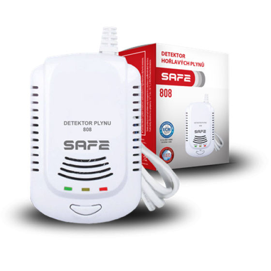 Hlásič plynu SAFE - 808 je ideálne vhodný na detekciu úniku plynu zo všetkých domácich plynových spotrebičov a plynových kotlov. Detekuje všetky horľavé plyny bežne sa vyskytujúce v domácnostiach.