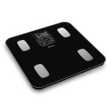 Váha má nosnost 180 kg a její nášlapná plocha je opatřena kontaktními plochami pro snímání hodnot z těla.