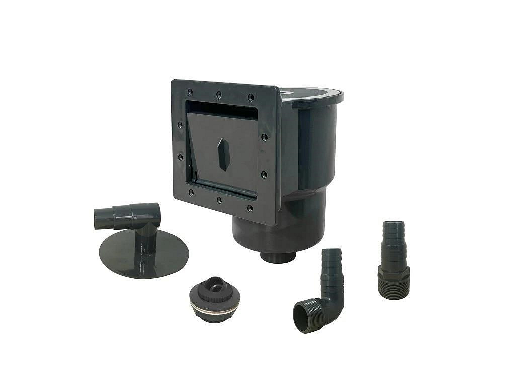 Univerzální skimmer pro téměř všechny bazény s ocelovou stěnou na trhu s otvorem ve stěně 148 x 140 mm. Skimmer je připojitelný na bazénové hadice o rozměru 32 nebo 38 mm. Součástí balení skimmeru jsou vratná tryska (pro otvor 60 mm a připojení bazénové hadice 32/38 mm), sběrný košík, plovoucí klapka proti návratu nečistot do bazénu a víko s adaptérem pro připojení ručních a poloautomatických vysavačů.