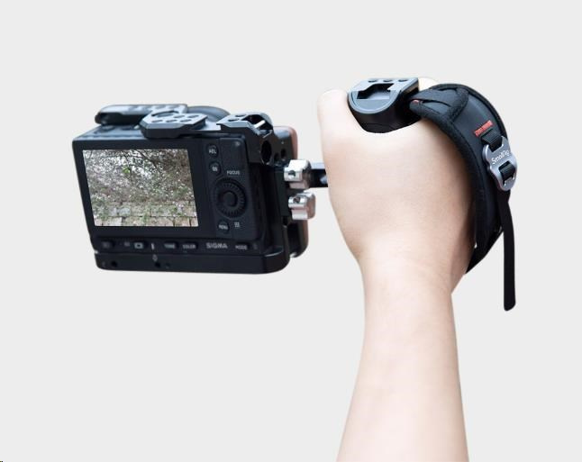 Universal hand strap, compatible with camera cage and external side handgrip with strap slot on both upper and lower sides and its width not exceeding 12mm.
