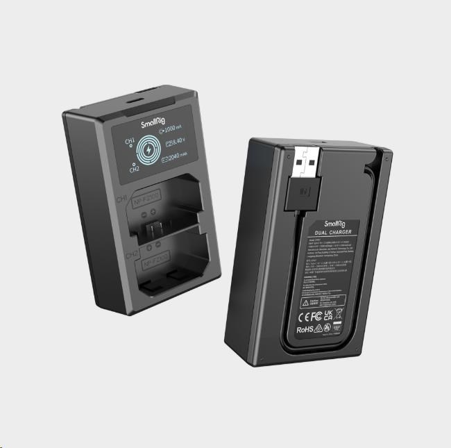 Dvojitá nabíjačka dokáže nabíjať dve batérie súčasne, pričom jej LCD displej zobrazuje stav nabíjania v reálnom čase.