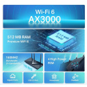 Rýchlosti WiFi | AX3000 5 GHz: 2402 Mbps (802.11ax, HE160) 2,4 GHz: 574 Mbps (802.11ax) |