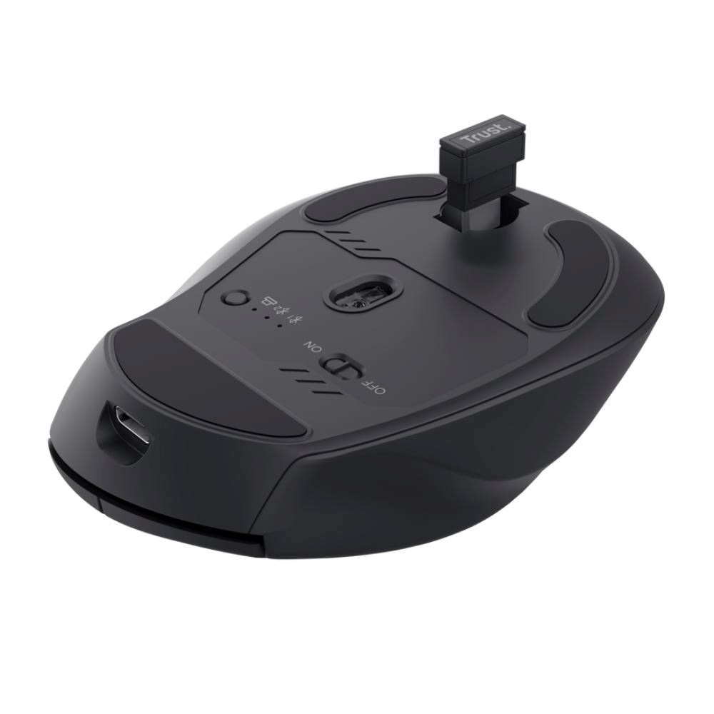 TRUST NIVEN je pohodlná a všestranná bezdrátová myš, která je ideální pro každodenní práci i přepínání mezi více zařízeními. Díky možnosti připojit až tři zařízení současně pomocí 2,4 GHz USB-C přijímače a Bluetooth ji snadno využiješ s notebookem, tabletem nebo počítačem bez zbytečných kabelů. Myš je navržena pro dlouhodobé používání s komfortní oporou palce, tichými tlačítky a nastavitelným snímáním DPI, takže poskytuje plynulé ovládání a pohodlí po celý den. Vestavěná nabíjecí baterie s výdrží až čtyři měsíce a udržitelný design z recyklovaného plastu dělají z Niven chytrou volbu pro moderní pracovní prostředí.