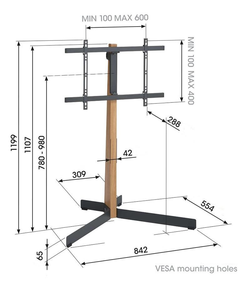 Predstavujeme Vogel's TVS 3695, dokonale flexibilný, voľne stojaci TV stojan. Jednoducho umiestnite a nasmerujte svoj televízor vďaka stojanu s bezpečným, pevný a štýlovým dizajnom. TVS 3695 je vyrobený z prémiového dubového dreva s certifikáciou PEFC a ocele a je ideálny pre takmer všetky televízory s uhlopriečkou 40”-77” a hmotnosťou do 50 kg.